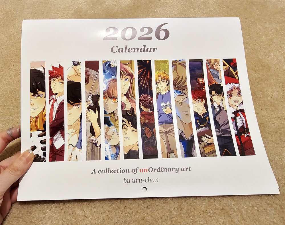 12 Month UnOrdinary themed calendar - full color - size: 11" x 8.5" - includes 12 high-quality artworks - includes character birthdays - signed by uru-chan